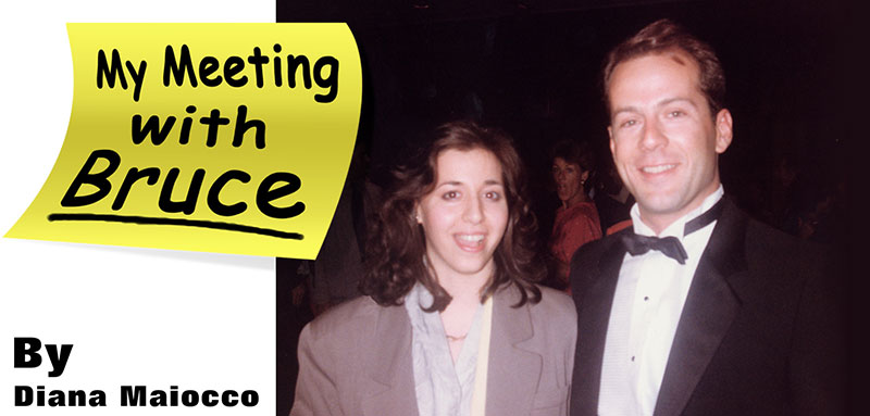 A couple of hours passed, then suddenly, I saw him coming toward me. He saw that I was walking toward him and sensed that I wanted to talk to him. As I was moving closer, someone intercepted and started a conversation with him. He then turned around and looked me in the eye had a little smirk on his face. I nodded my head signaling that I would wait for him to finish talking. Meanwhile, a woman, who stood nearby, saw our "exchange" and asked me "Are you with him?" I replied "I wish!" Now I was getting excited and nervous because I was about to meet Bruce Willis. (I was also very young — not the confident, worldly woman I am now — HA!)