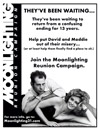 Legal Disclaimer: This website, fan fiction and fanzine are based on characters created by Glenn Gordon Caron and owned by Picturemaker Productions and ABC Circle Films. This website is for entertainment purposes only and is not meant to violate or infringe on any copyrights. This site is also unofficial and is not affiliated with Glenn Gordon Caron, Bruce Willis, Cybill Shepherd or any other member of the Moonlighting cast and crew.